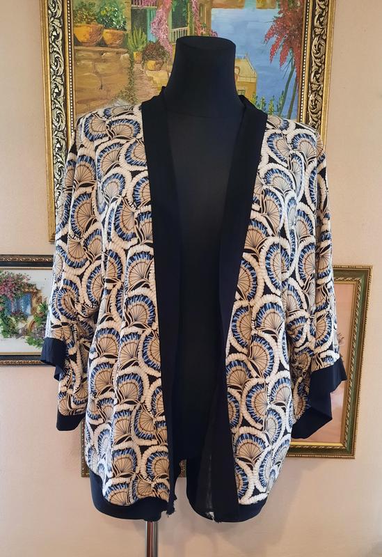 стан ідеальний основна тканина-віскоза, підкладка-шифон заміри: плечі 74 см довжина рукава 26 см пройми 66 см довжина виробу 67 см арт.1/3