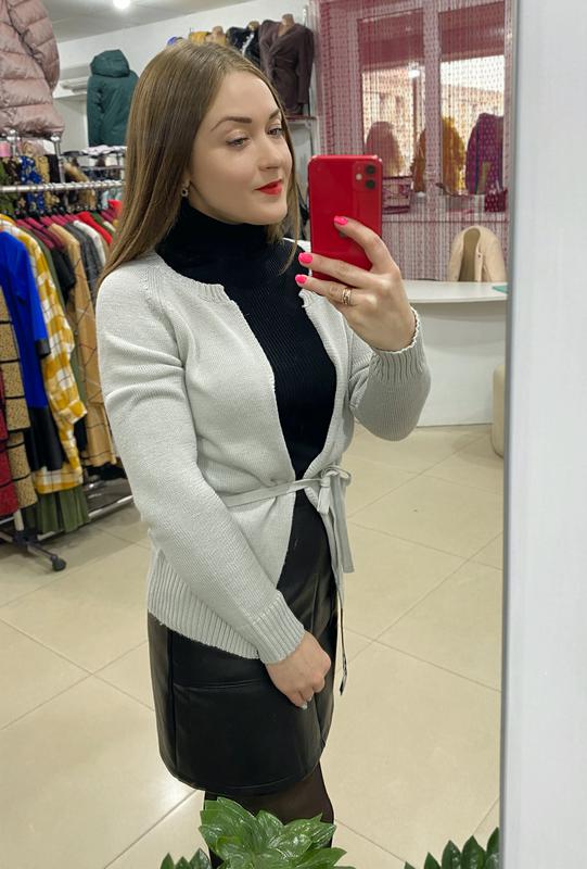 Якісна кофтинка - накидка светленьком сірому відтінку . Дуже приємна за якістю , не скочується , відмінно переться . Красиво виглядає з сорочками , влітку ідеальний варіант на футболку . Виробництво Туреччина. ОГ 86-88 см ( як на мене ) Довжина 59 см по спинці