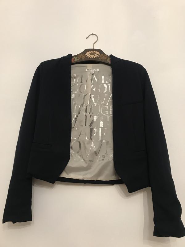 Гарний жакет накидка відомого бренду. Незастегиваеться,кишені-обманка спереду. Красива ,якісна підкладка. Основний колір-класичний синій Всі бирки є. Довжина від плеча 50 Плечі 41 Рукав 62(можна підкачувати,дуже стильно) Пог 40-41 Піт 42 Поб44-45 Виміри зроблені в спокійному стані,як на фото1,не в стягнутому стані. Матеріал дуже добре тягнеться. Доставка Укрпошта та Нп, безпечної оплати немає, читайте відгуки покупців і розділ про продавця