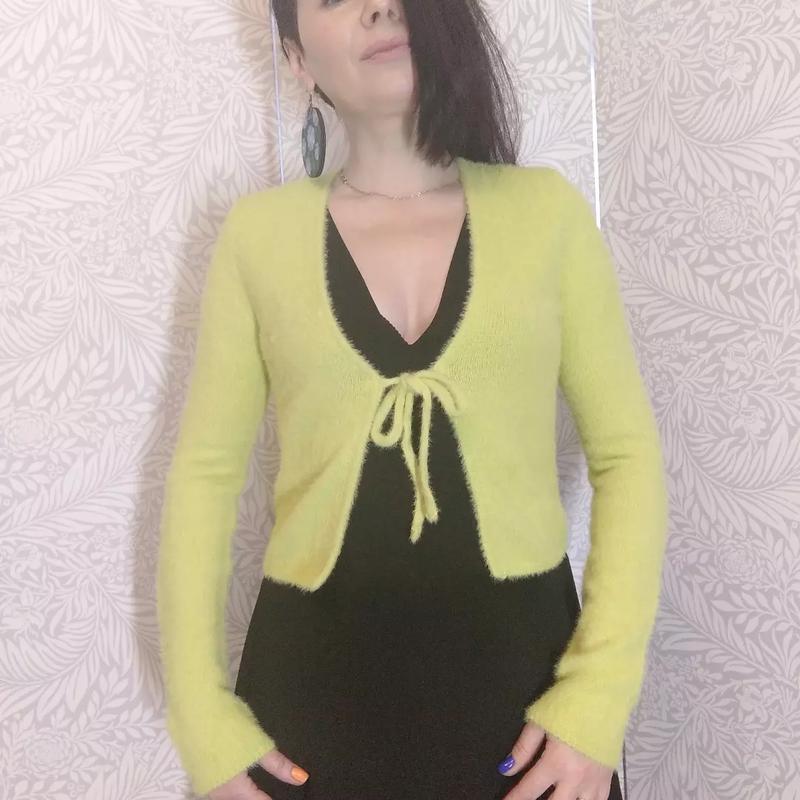 Кофтинка h&m, лаймового кольору, на зав'язочках, пухнаста.