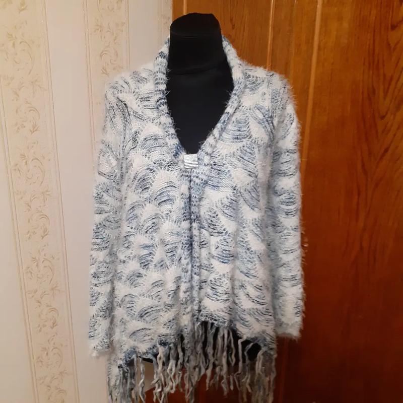 Пушистый пончо с бахромой мягкая моделька вязка в геометрическом принте плечи в рукавах!Дл.70/75 Р 60 от горловины Б по 20 Ог 110+Об 160++рекомендю👍