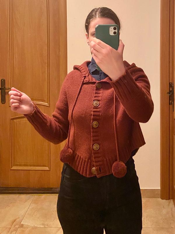 Кофта пончо в ідеальному стані. Вʼязка мʼяка, приємна. Розмір S. Довжина 51 см. За додатковими замірами звертайтесь будь ласка в дірект. Склад 100 % поліестер. Приміряно на 36й розмір.