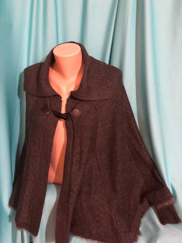 Пончо-накидка с манжетами. Б/у, состояние удовлетворительно. Обробка низа - хутро кролика. Благодаря своей объемности подойдет на любой размер. Цвет серый, как на последнем фото.