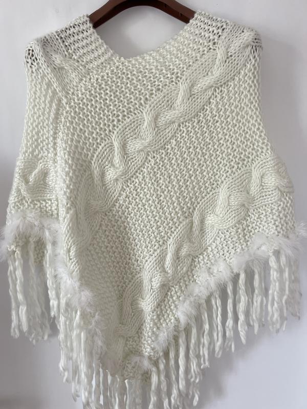 Нове біле пончо з пушком довжиною до френзлів 66 см, з френзлями 83 см, максимальна ширина 75 см.