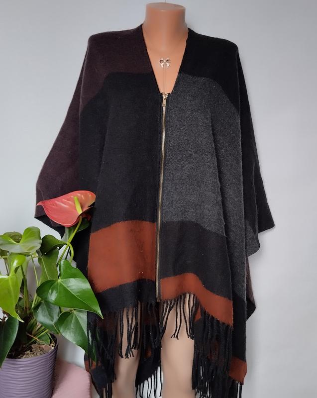 Шикарный теплящий плед пончо на молнии. Состояние в целом отлично, где-то нет-де есть немного котиков, некритично, убираются. Замеры: длина 80+12 бахрома (в разложенном виде 160+бахрома), ширина 127 см.