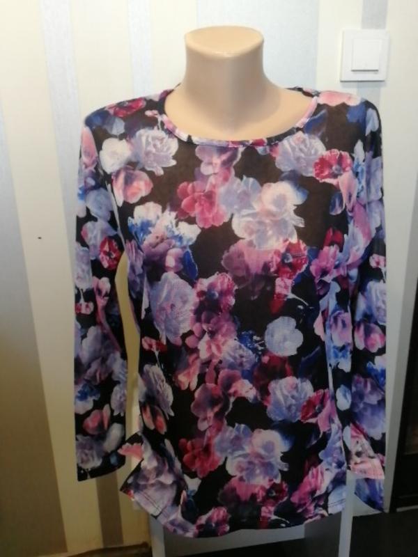 Яскрава кофта, з боків розрізи. Розмір вказано 42 (14), але вона маломерит на 40