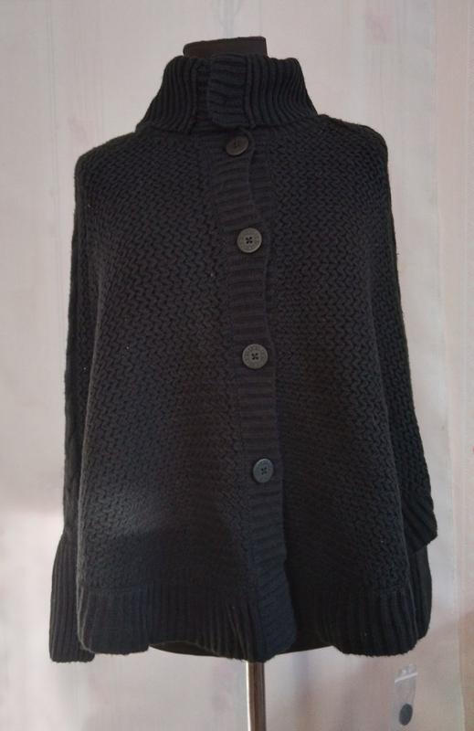 Жіноча в'язана кофта-пончо. Дуже зручна і стильна річ. Можна і на прогулянку і на роботу. Кофта з етикеткою і запасний ґудзиком. Склад шерсть, акрил. Розмір XS-S. Кофта нова, але куплена в якісному стоці (багато речей з етикетками). Довжина по переду 59см, по спинці 74 см, довжина рукава з плечем -65см. Якщо у вас виникли будь-які запитання, пишіть відповім усім із задоволенням. Доставка здійснюється тільки після 100 % передоплати на карту Приват банку або Ощад банку. Спосіб доставки Укрпошта - оплачує покупець. Відправка вівторок, середа і п'ятниця.