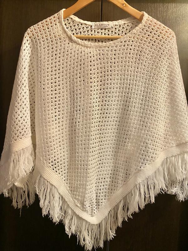 В'язане пончо, білого кольору ( фото не передає білий колір)