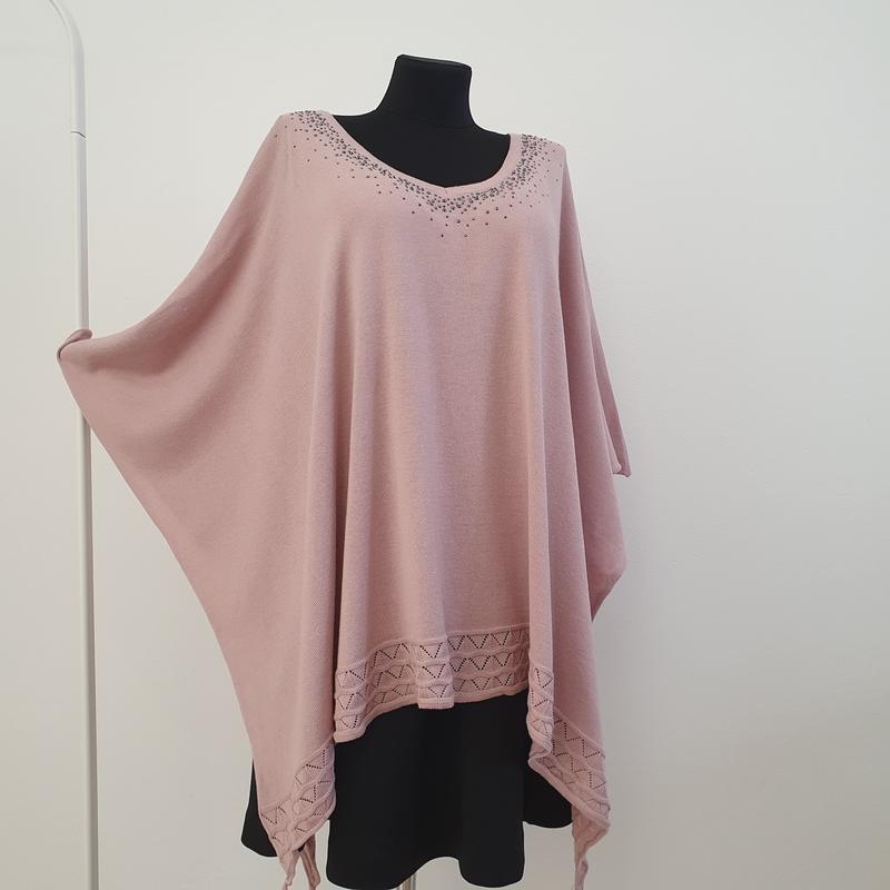 Шалене пончо. Є нюанс: трохи освітлений ділянку, типу подвыгоревшего - непомітний в шкарпетці, взагалі ледве помітний тільки при певному освітленні (виявився тільки при зйомці для цього оголошення), придивіться до останнього фото. 50% бавовна, 50% акрил Колір пудровий з рожевим відтінком Розмір one size Ціна з урахуванням нюансу 200грн