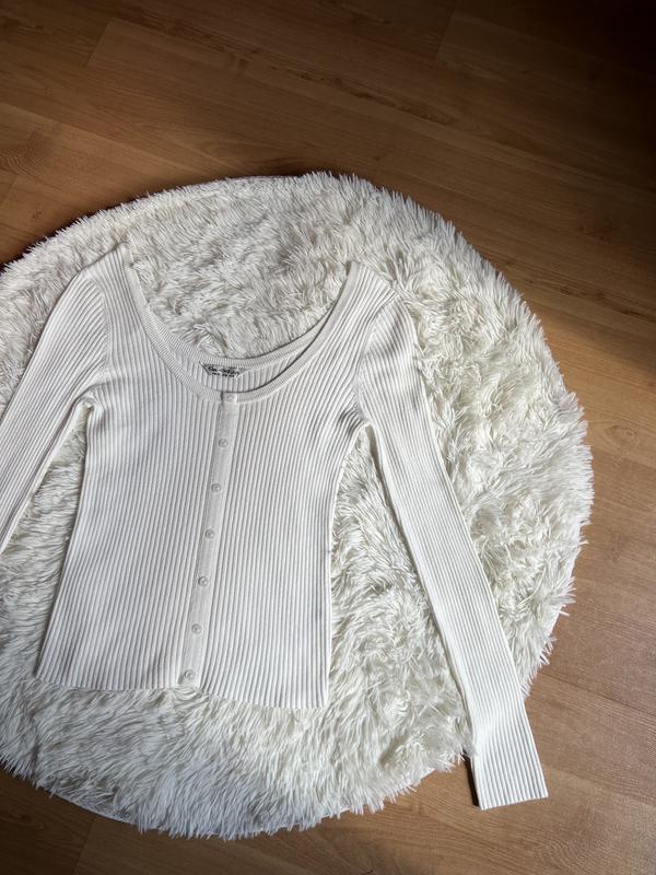 Стильный пуловер в рубчик Круглый вырез Декор пуговицы Лёгкая ткань , прекрасно тянется Приятная к телу Идеальное состояние Замеры Длина-40 П.о.г-38 Рукав-64 Под рукавом-47