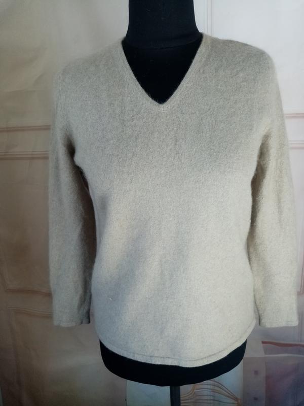 Полувер із кашеміру в доброму стані є невелика дірочка яка була виправлена в ательє Ног 48см Нот45см Плечі 36см довжина рукова 55см нор 14см Колір тауп