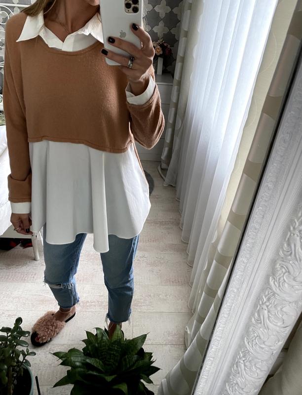 Стильный и изысканный пуловер от премиального бренда Max & Moi. 70% вовна 30% кашемір 100% бавовна( блуза) Размер S. (подойдет и на М-фасон оверсайз) Состояние новой вещи.