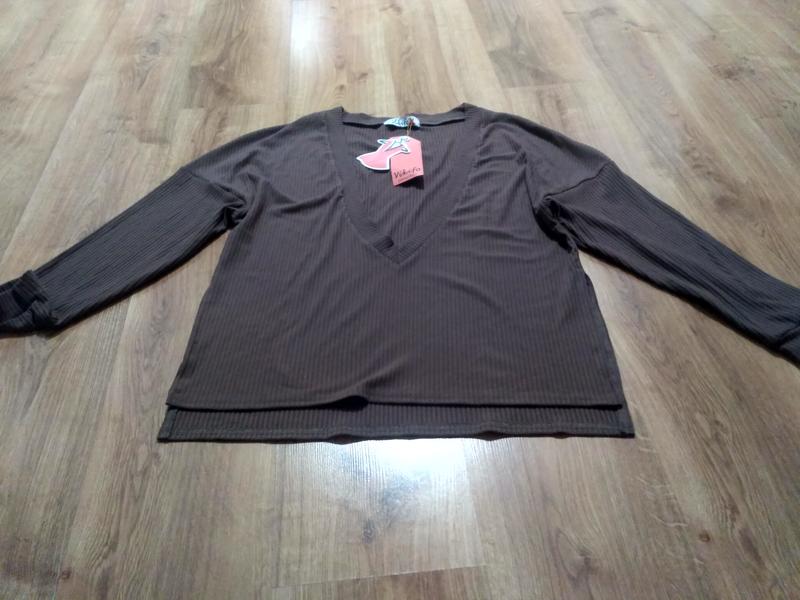 Гарний якісний пуловер з глибоким вирізом.Колір мокко.