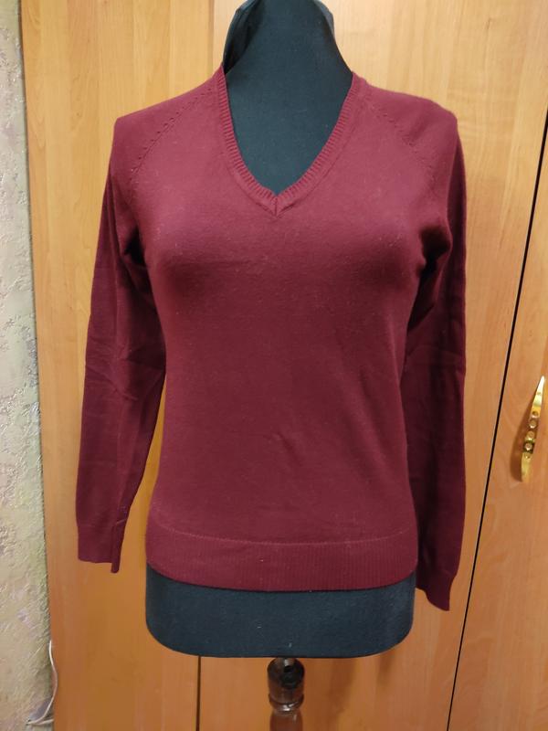 Джемпер женский, бордового цвета, размер М, длинна по спине 53 см, рукав реглан, длинна от основания шеи 67 см., ширина по груди 39 см.