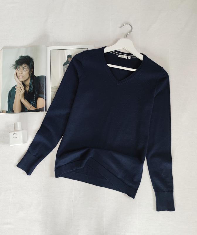 🌿100% шерсті в темно синьому пуловері Nulu прямого крою Розмір:S Заміри:ПО грудей 43 см, довжина 57 см, довжина 60 см