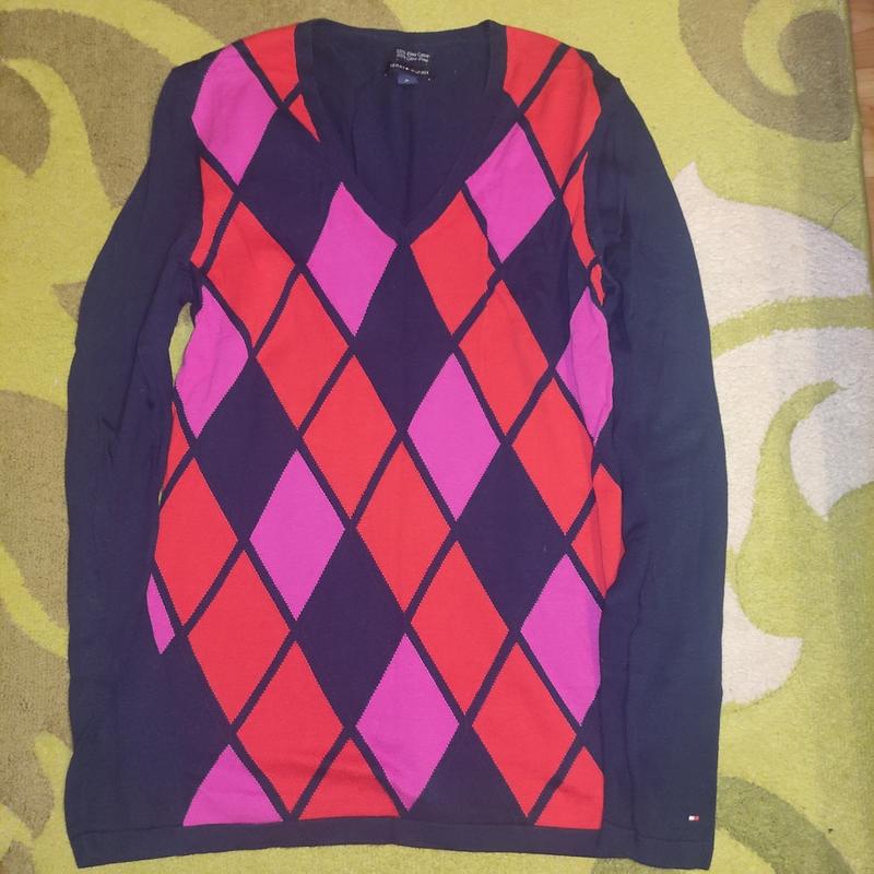 Джемпер, швiтер,пуловер з довгим рукавом.розмір M.довжина 67,рукав 64, груди 44, в'яз 42,низ 42.квіт темно-синій, на фото вийшов засвічений.не вилиняв.стояння гарне. 100 проць.бавовна. . Подивіться круті речі.