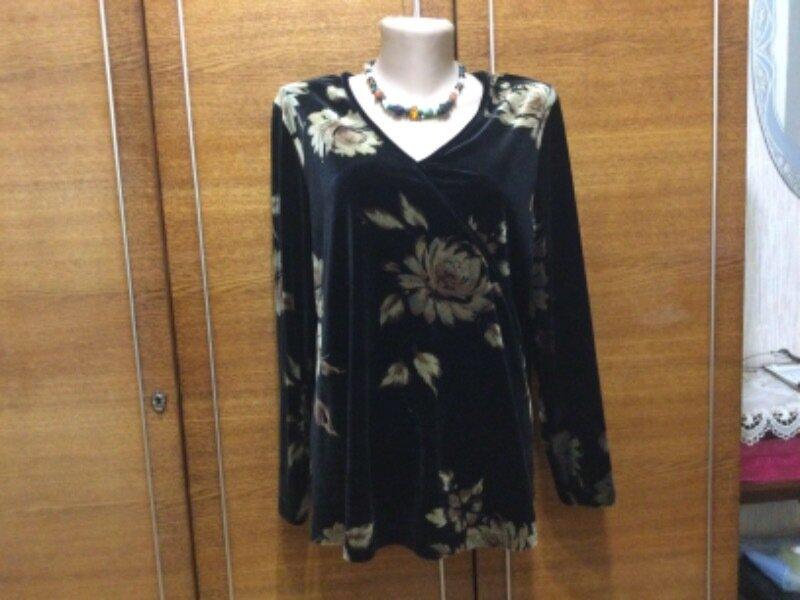 Шикарна велюрова кофта. На НОГ до 54 см. Рукав — 61 см. Довжина від плеча вниз — 64 см.
