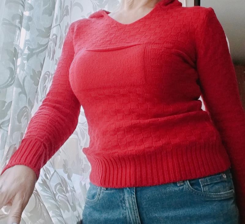 кофта с капюшоном размер С в составе есть шерсть. ,теплая и удобная, красного цвета