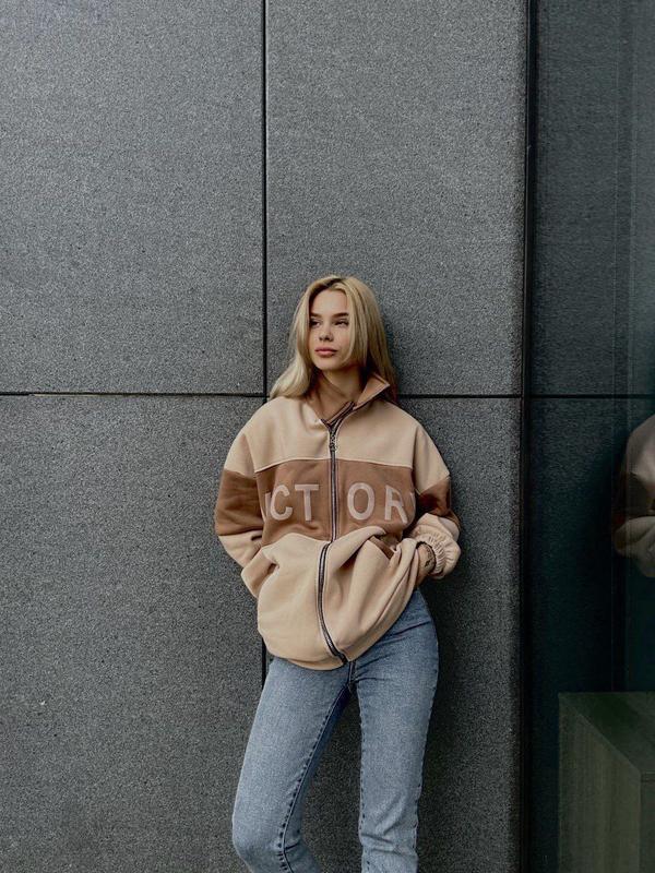 Стильный теплый бомбер на флисе Модель #К ₽АR 121 Уютный - теплый бомбер худи оверсайз Застегивается на молнии Карманы с обеих сторон Качественный накат Victory материал качественная трехнитка на флисе Размер 42-44, 46-48 Цвет - беж, кэмел цена 630 грн❣ ФОТО РЕАЛ Высочайшее качество пошива