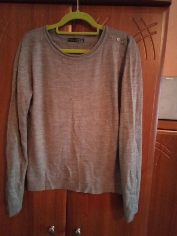 молодежная кофточка серого цвета на плечах пуговицы, пог 50, длина изделия 57 см, длина рукава 64 см, есть катышки