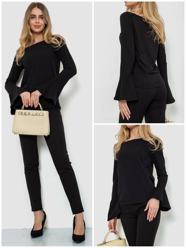 Кофта жіноча однотонна, колір чорний. Розмірна сітка на останньому фото
