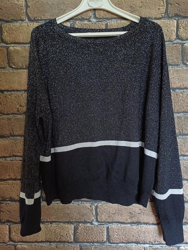 Фірмовий пуловер Чудова річ! Перед прикрашений люрексовою ниткою. Спинка - чорний трикотаж. Розмір 46 європейський ( наш 50-52)