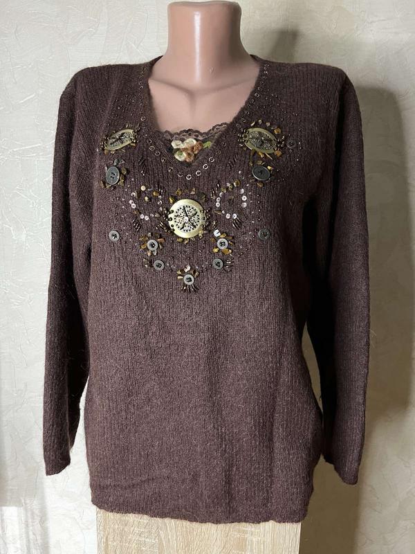 Кофта має нарядний вигляд.Дуже приємна до тіла,легкаі тепла. Заміри :ПОГ -62; ПОБ-62; довжина-65.