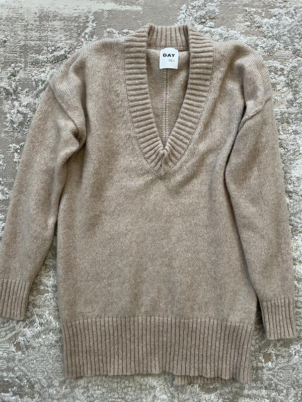 Сучасного фасону, оверсайз ,розмір XS , 75 % вовни мериноса ; на дотик мʼякий ,дуже приємний, красивий колір кава з молоком) преміумбренду DAY Birger et Mikkelsen