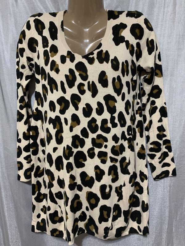 Подовжений пуловер з м'якої трикотажної тканини. Заміри: довжина - 82см., плечі - 35см., рукав - 60см., ПОГ - 44см., ПОТ - 47см., ПОБ - 52см