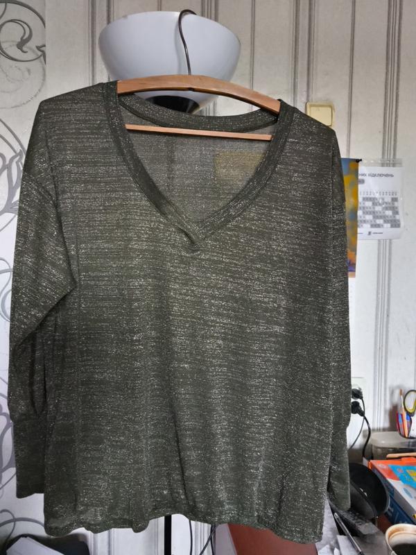 Кофточка с люрексом, ПОГ69, довжина по спинці 68, колір зелено- хакі, низ на гумці, тканина трикотаж в'язка.ПОС59-72.