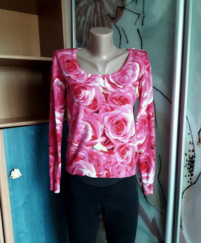 Хочу предложить Вам приобрести нереально красивую кофточку из тонкого, нежного трикотажа машинной вязки из хлопка от Olko Кофточка в очень хорошем состоянии, ближе к идеальному. Она действительно тонкая, нежная и необычайно приятная по тактильным ощущениям. Бирка с составом отсутствует, но это однозначно трикотаж машинной вязки из хлопка. Хорошо тянется. Указываю несколько размеров поскольку размерные сетки разных брендов отличаются и материал тянется. Размер: М (евро), наш: 46, но маломерит и подойдёт на: 42-44, а для уточнения смотрите замеры: длина от плеча 52см; длина по спине 51см; длина от выреза горловины 39см; длина от подм. по боковому шву 36см; первый замер в спокойном состоянии, а второй в растянутом; ширина по плечам 40-46см; полуобхват по груди 46-54см; полуобхват по талии 44-54см; полуобхват внизу 37-48см, на манжете 5,5см; плечо 9см; длина рукава от плеча 57см, из них манжета 6,5см; длина рукава от выреза горловины 66см; ширина в районе бицепса 15, тянется до 20см.