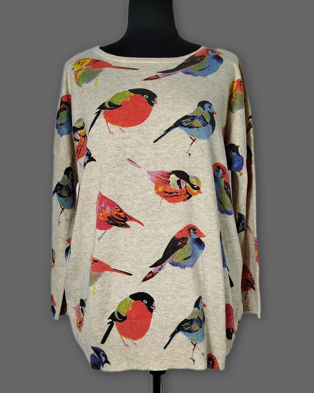 Пуловер светр з принтом птахи меланж крій оверсайз бренд purplish london