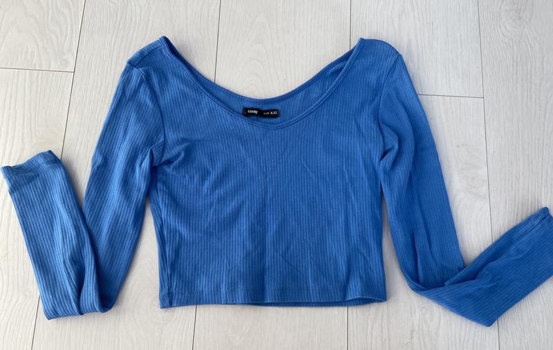 Голуба облягаюча кофта, розмір XXS, з відкритим декольте