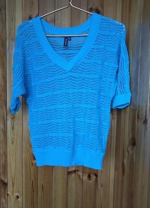 Пуловер ажурный, б/у, одевала несколько раз, состояние идеальное, р-р 36-38(EUR), подойдёт на 46-48-50 укр. Вonprix. Цвет бирюзовый, в реале ближе к цвету на фото с ярлычком, только более насыщенный. Очень красиво смотрится как с топом, так и без. Замеры по запросу.