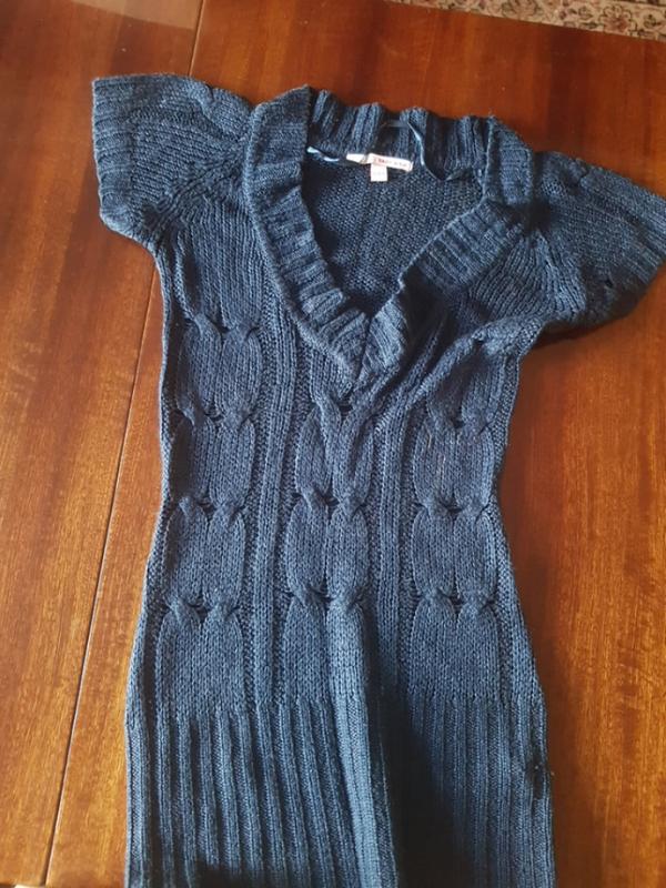 подовжена в'язана жилетка, колір глибокий насичений морської хвилі. акрил.довжина 73 див.