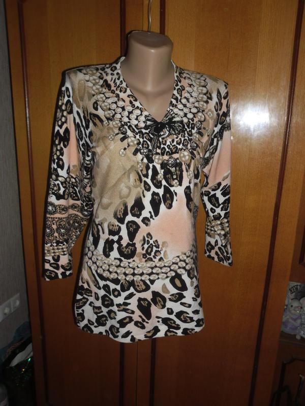 Дуже гарна кофта. Добре тягнеться, тому такий діапазон розміру. Довжина по спині - 75 см. Довжина рукава від шиї там приспущено про плечі -66 див.