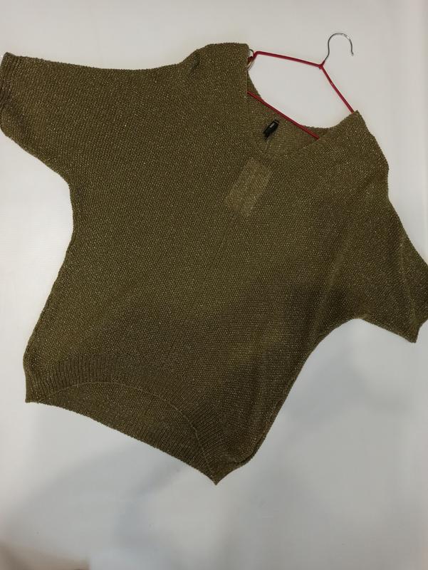 гарний оливковий колір з люрексовою ниткою, привезений з Стамбула, рукав до ліктя, перед коротше спинки і фігурно вирізаний півколом, прекрасно приховує невеликий животик)