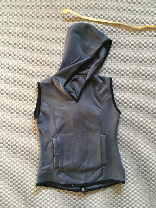 Класна безрукавка, нетипова, ззаду замочок, спереду кишеня. Гарно прилягає до тіла. Розмір насправді мало мірить думаю 36-38
