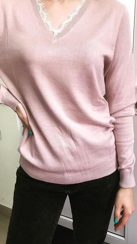Пуловер кофта Blue motion, Германия Размер евро S 36-38 Вырез V-образный спереди и сзади. Спереди вырез украшен кружевом. Цвет - пудра. Очень мягкий, приятный пуловер. Замеры: плечи 35см пог 44см низ 36см длина 62см рукав 58,5 см Состав:70% вискоза и 30%полиамид Новый, с бумажной биркой