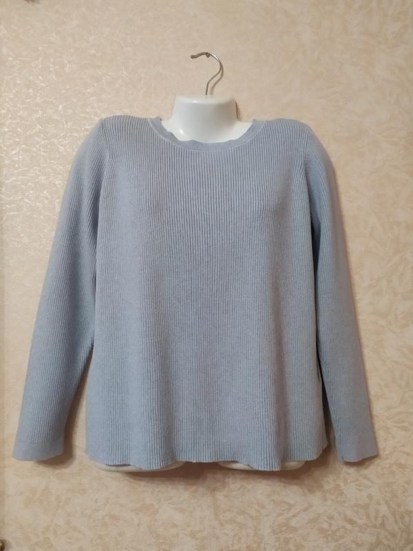 100%-бавовна. Пов'язаний гумкою. Відкрита спина на двох затягуваннях. Колір - сіро - блакитний. М'яко тягнеться. Всі виміри в спокійному стані. Розмір вказано - L. ПОгруди-50см, Довжина рукава від горловини-71см, Довжина-60,5 див.