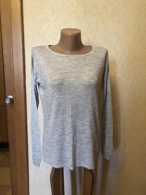 Очень мягкий. Оригинальный фасон. Спинка длиннее чем перед. Верхняя бирка срезана. Фирма и состав ткани на фото.
