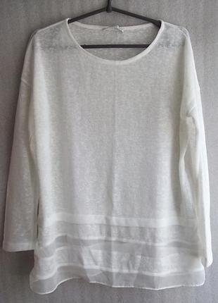 белый женский пуловер в отличном состоянии. без нюансов. без дефектов. Состотав ткани : 80% полиэстер. 20% вискоза. Ткань просвечивается. Замеры: окружность ворота -64 плечи -60 плечо-20. рукав от плеча - 44. рукав от подмышки - 41. длина по спине - 66. ПОГ 54 ПОТ - 53. ПОБ - 57.