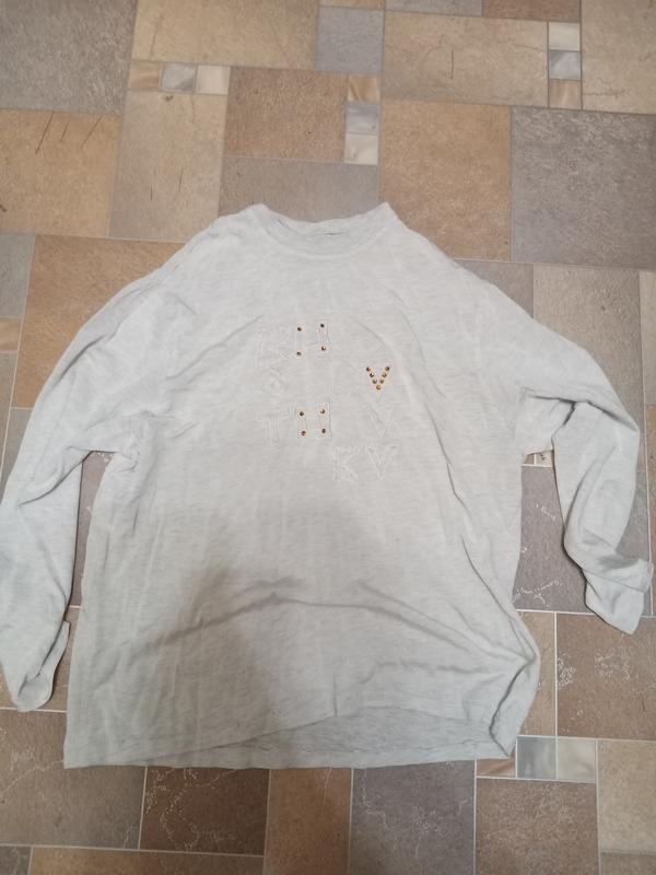 Белая кофта со стразами и вышитой надписью, размер не написано, думаю S ПОГ-42 ПОТ-42 Низ-43 Плечи-40 Рукава-44 Длина-54
