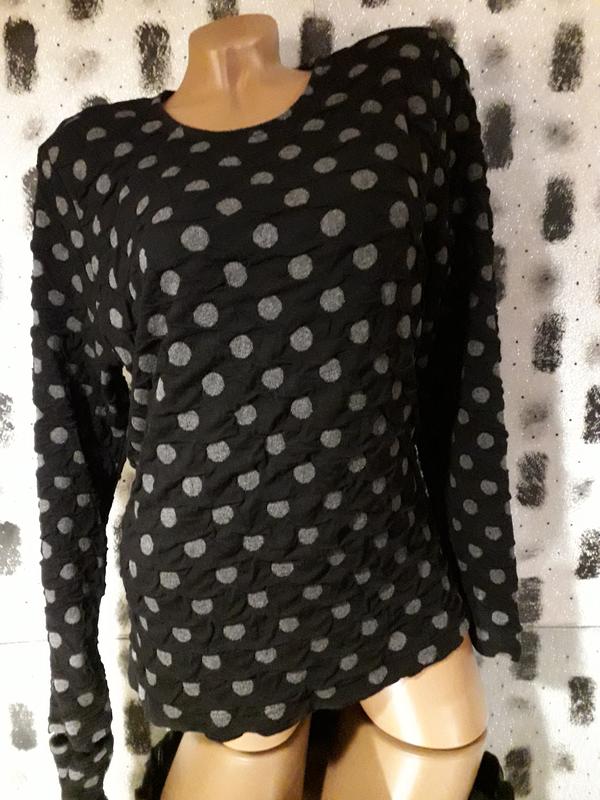 Кофта в горошек.Колир основной черный и серый орех.Ткань структурная, мягкая, тянется. Замеры в искушенном состоянии: Плечи 42 Пог 51+ По низу 54+ Рукав 61 Длина 66. Обмену и возврат нет. Нова пошта.