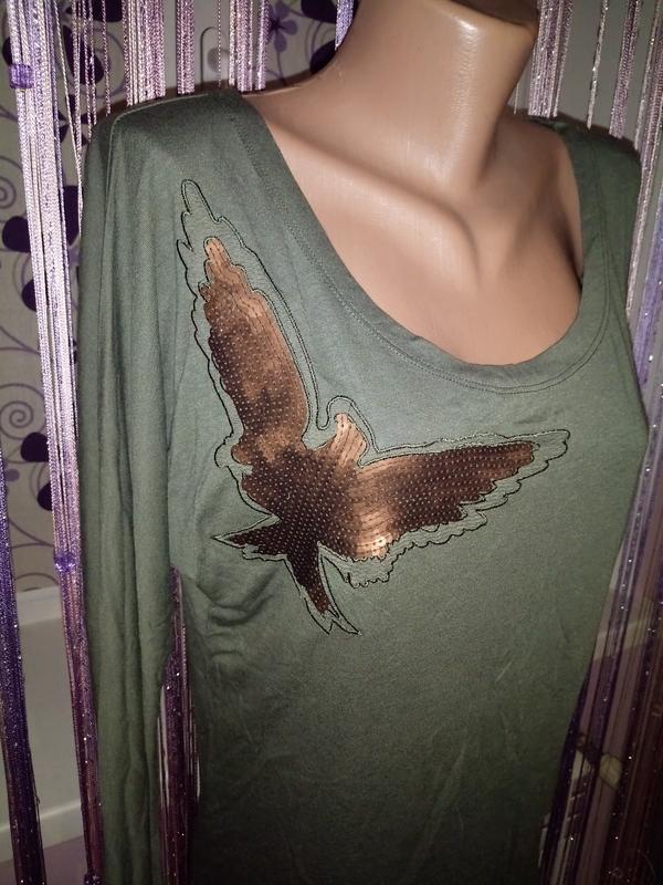 Кофта жіноча, рукав "летюча миша", має з паєток орла ☝️нова з біркою рукав 🏷️розмір 48, 🎨колір олива, золотистий тканина віскоза 📏ПОГ 46 Довжина 75 💙💛Переходьте в мою шафу💛💙 ⭐📢Підписуйтесь і не пропустіть жодної новинки😍 🚘Нова пошта-часткова передоплата💰 Укр пошта-повна👛 📣при 🛍️ двох речей на третю знижка 50% (на найменшу за ціною, або рівноцінну) ❗️Обміну і повернення не має, робіть замовлення обдумано☝️