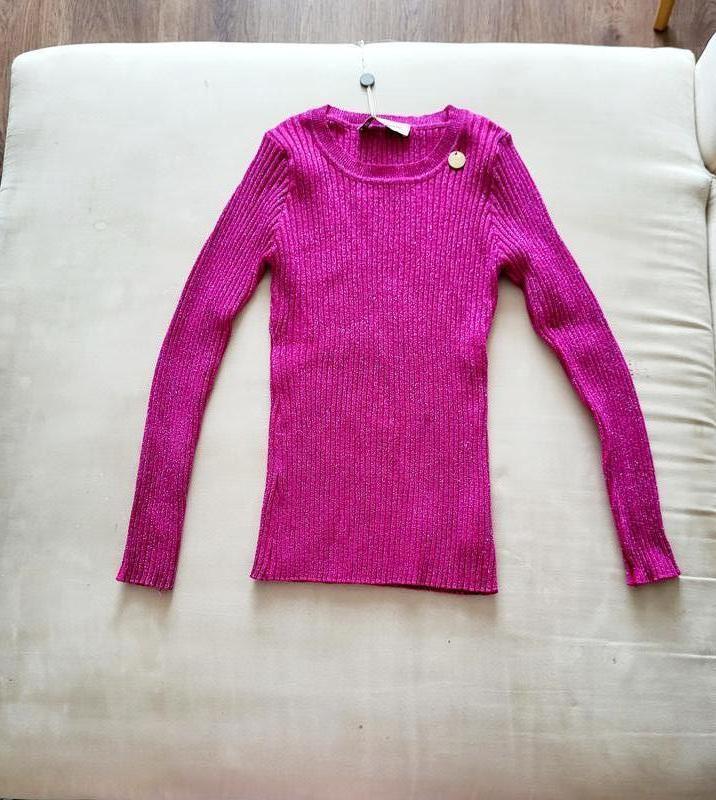 Новый фирменный джемпер из вискозы, Размер указан м/л,но подойдет также и на с/м🌺 Тянется легко,яркий,с блеском ,,шиммером,,❤️ Оригинал🌺 На золотистой подвечке с логотипом,есть небольшая царапина,дефект. не заметно) Переходите пожалуйста в инстагр.буду там выкладывать объявления-( кто с шафа, доп.скидка 10%) набирайте в инсте : милан.иа27 ,только англ.буквами.