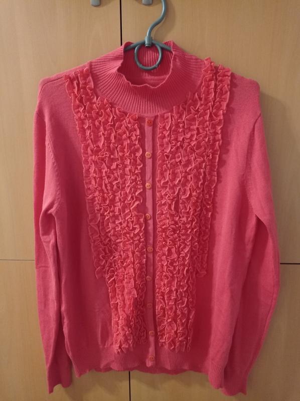 Нарядна кофта -гольф.Ідеальний варіант на весну.Тканина дуже приємна до тіла.Якість супер.Розмір+-50-52.Заміри по запиту. Безпечною оплатою не Робіть замовлення обдумано назад речі б'у не приймаю.Дякую за розуміння.