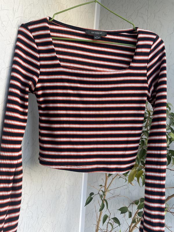 Трикотажний топ РRIMARK 🧡🖤 в рубчик з квадратним вирізом. Розмір ХS. Заміри: плечі 34, ПО грудей 38+, довжина 40, рукав 60. 🌾дивись і інші мої оголошення та підписуйся.