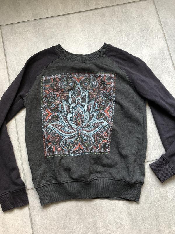 Красивый реглан из трехнитки. Есть в некоторых местах катышки, можно убрать машинкой. Состояние отличное, только убрать катышки Размер по наборке xs, пойдет и на s. Длина 54 см НОГ - 45 Рукав от горловины 62 см