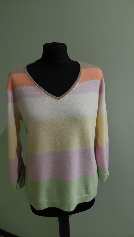 Кашемировая кофта,состав 100%кашемир,пр.Германия.Замеры :длина 59 см,рукав3/4,с внутренней стороны присобран,плечи 40 см,п.объем груди 56 см.